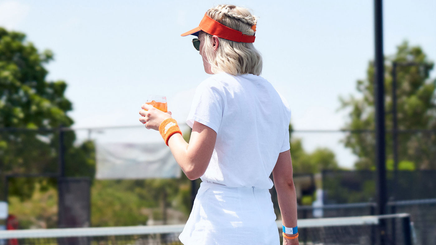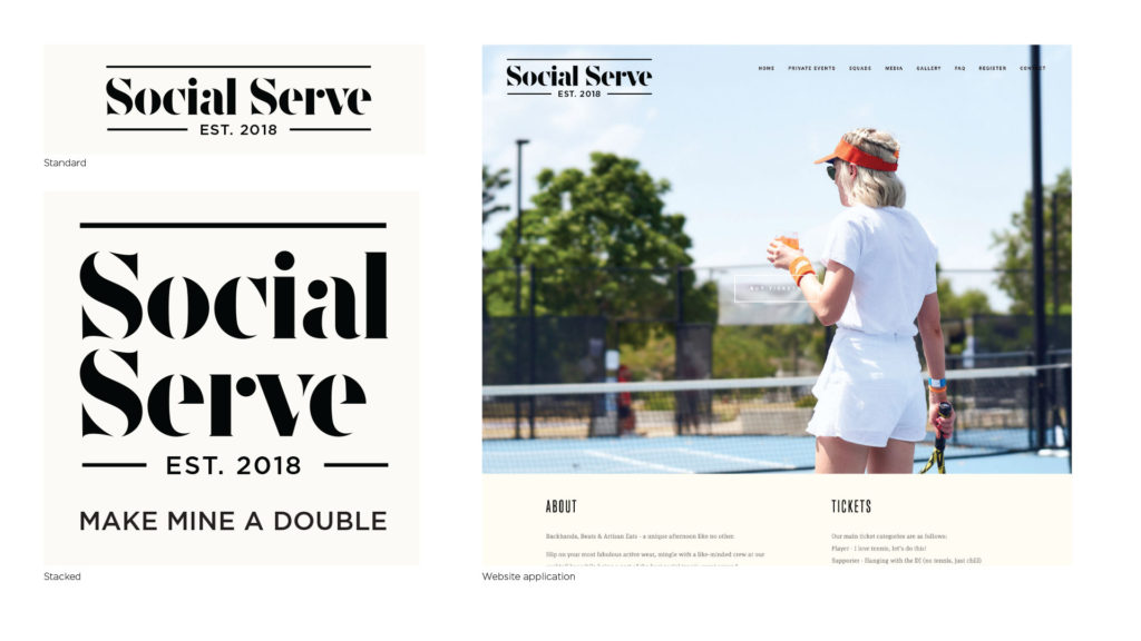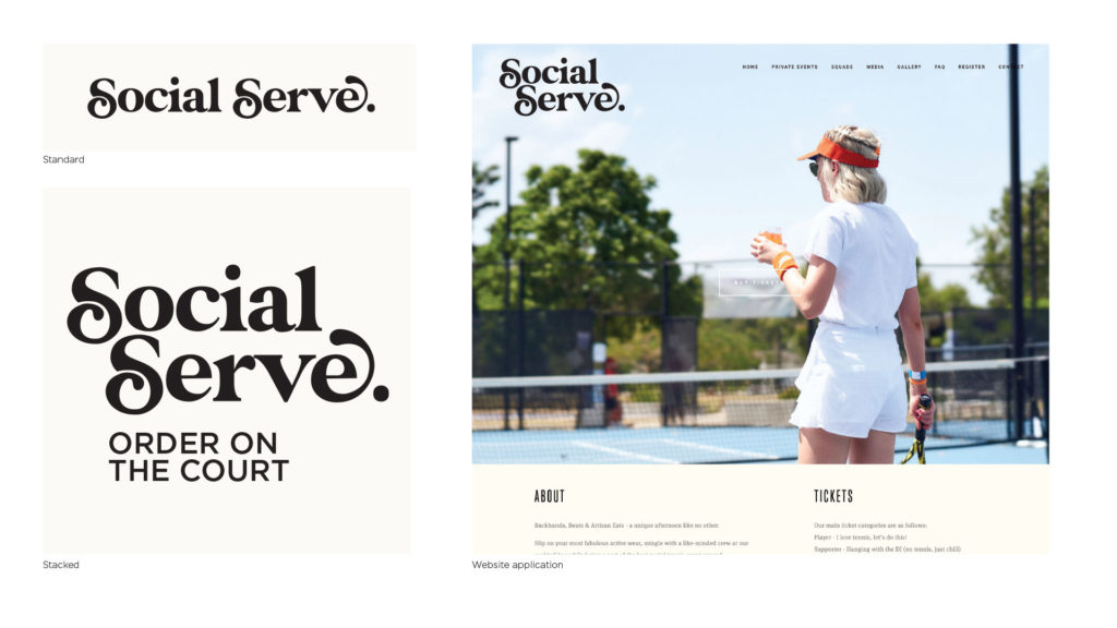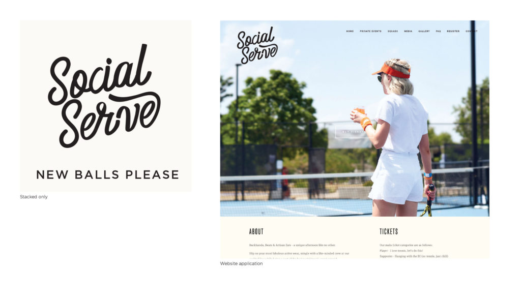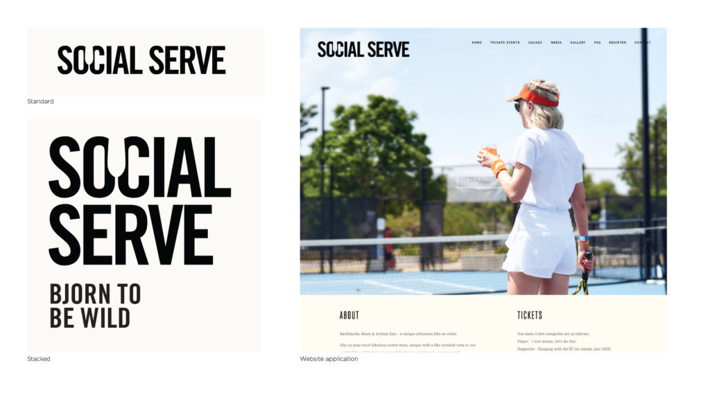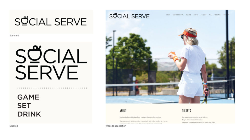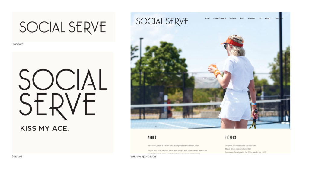 Branding for Social Serve, bringing a music festival approach to events with party vibes, cocktails and a giant serving of social tennis.